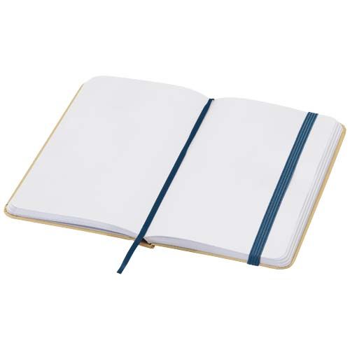 Le carnet A6 en carton recyclé à couverture rigide et coins arrondis Reed est non seulement un indispensable du bureau, mais aussi une excellente occasion de promouvoir votre marque. Le carnet comporte 96 feuilles vierges d'un grammage de 70 g/m2 et une couverture douce au toucher. Il est muni d'un élastique de fermeture et d'un ruban marque- page.