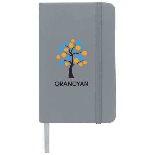 En plus d'être indispensable au bureau, le carnet Spectrum est également un excellent article pour promouvoir une marque. Le carnet à couverture rigide est en carton recouvert d'une couverture en PU doux au toucher. Les 96 feuilles lignées de 60 g/m², sourcées de manière responsable, sont idéales pour noter des idées rapides ou de longues notes. Le format de référence A6 est pratique, car il se glisse aisément dans un sac moyen et est facile à tenir. Le ruban du marque- page et la fermeture élastique sont de la même couleur.
