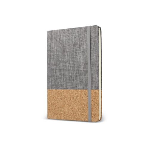 Ce carnet présente une couverture en PET et liège recyclés et 80 feuilles de papier lignées de 70 grammes certifiées FSC. Il est doté d'un élastique de fermeture et d'un ruban marque- page pour plus de commodité. Fabriqué avec du PET recyclé.Matières :Liège, R- PET