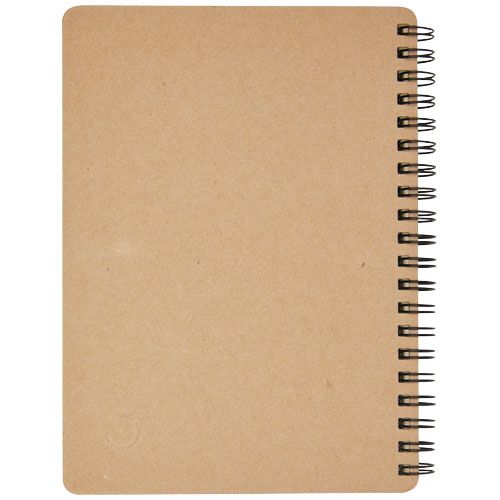 Carnet à la couverture en papier recyclé avec 60 pages format A6 en papier recyclé à lignes et son stylo assorti. Le carnet et le stylo sont emballés ensemble.