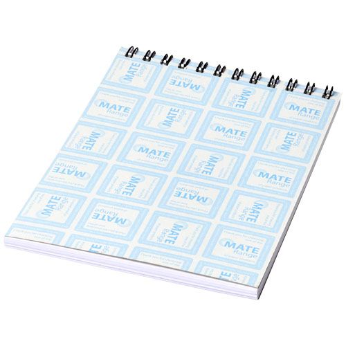 Cahier Desk- Mate® A6 à spirales. Ce cahier inclut des spirales blanches ou noires. Inclut une couverture cartonnée brillante (250 g/m²) et du papier vierge (80 g/m²). Version standard avec 50 feuilles, également disponible avec 80 feuilles. Vous pouvez personnaliser les pages de ce carnet avec n'importe quel motif - que vous souhaitiez du papier ligné, avec des carrés ou des points - tout est possible !