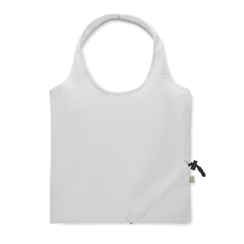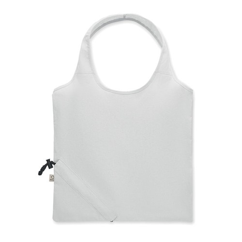 Sac shopping pliable en coton recyclé pré- consommation (70 % coton recyclé et 30 % RPET). 140 gr/m². Cet article peut rétrécir après impression.