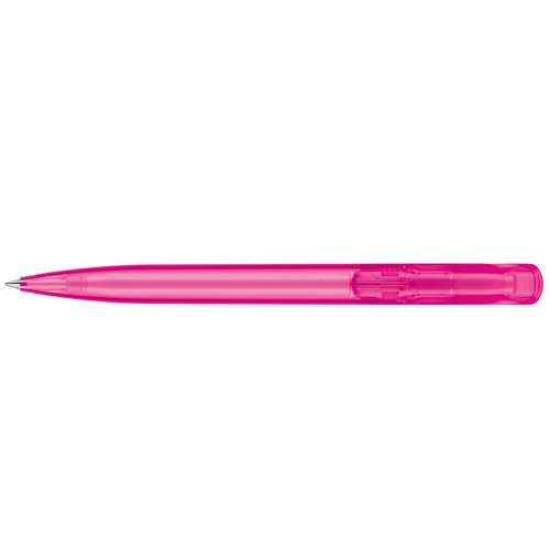 Stylo à bille rétractable. Surface du corps transparente givrée