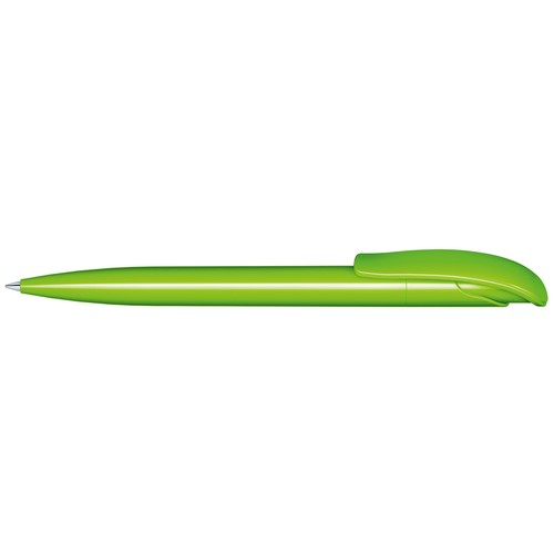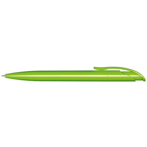 Stylo à bille rétractable avec corps et clip en plastique opaque brillant.