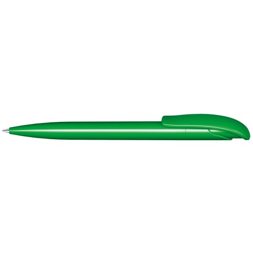 Stylo à bille rétractable avec corps et clip en plastique opaque brillant.