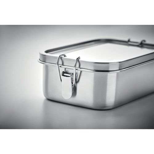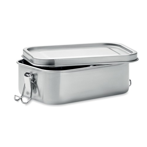 Lunchbox en acier inoxydable avec de solides boucles latérales assurant une parfaite fermeture. Capacité 750 ml.