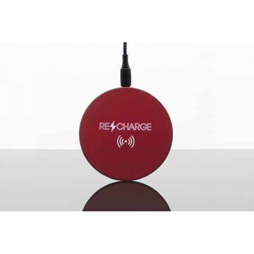 Station de chargement à induction 10 W compatible QI en rubber avec logo lumineux personnalisable.