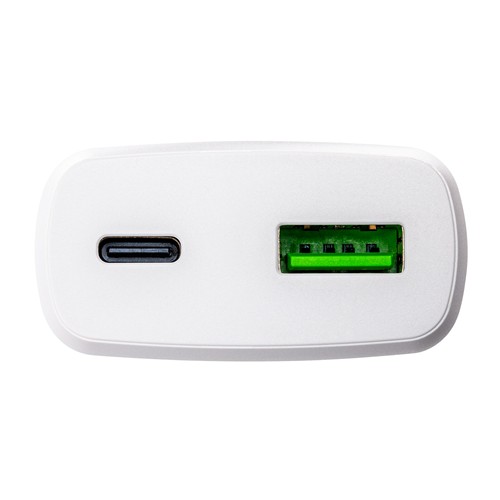 Avec ses deux ports empilés, il permet de charger plusieurs appareils simultanément et prend en charge les fonctions de charge rapide et de livraison d'énergie. Le boîtier est en plastique PC ignifuge et l'alimentation dispose de circuits de protection intégrés contre les surtensions, les courts- circuits et la surchauffe. Disponible en blanc élégant, le chargeur est livré dans une boîte design 1C élégante.
