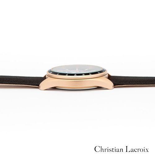 Voici la montre "Caprio" de Christian Lacroix, symbole d'un style moderne et d'un design avant- gardiste. Cette version présente un bracelet spécial en tissu et cuir véritable, offrant une touche unique et luxueuse. Le design noir, associé à un boîtier en or rose, crée une esthétique élégante et sophistiquée. Grâce à l'engagement de la marque en matière de qualité, la montre "Caprio" en or rose s'impose comme une déclaration d'élégance contemporaine. Rehaussez votre garde- robe avec ce garde- temps moderne et distinctif de Christian Lacroix.
