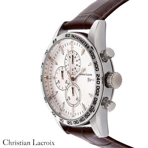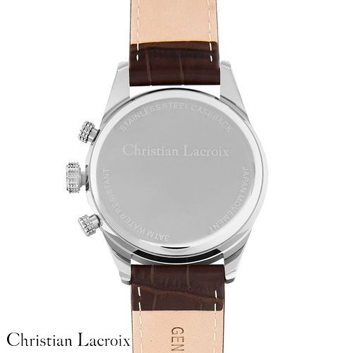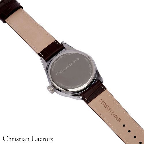 La montre "Tempus" de Christian Lacroix est un mélange d'élégance et de précision. Ce garde- temps est doté d'un bracelet en cuir véritable marron, orné d'un cadran argenté soleillé, le tout enchâssé dans un élégant boîtier chromé. Disponible en version dater ou chrono, le boîtier en alliage avec un fond en acier inoxydable garantit la durabilité. Avec une résistance à l'eau de 3 ATM, la montre "Tempus" est aussi fiable qu'élégante. Améliorez votre garde- robe avec la sophistication intemporelle de Christian Lacroix.