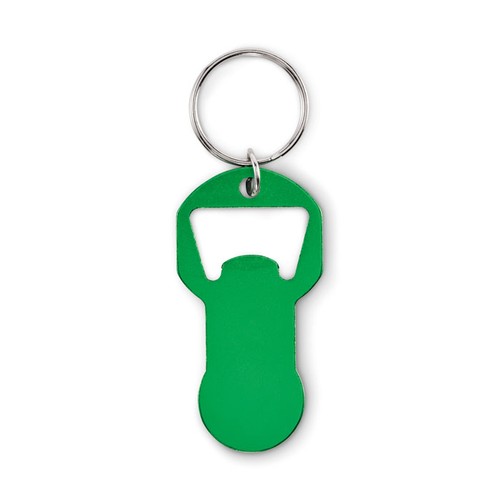 Porte- clés décapsuleur en aluminium recyclé avec anneau en fer.
