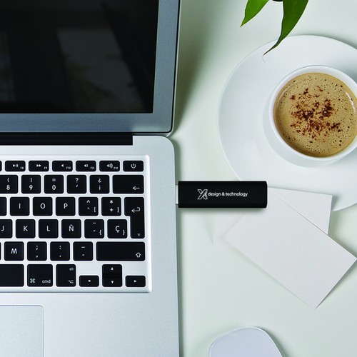Clé en rubber avec logo lumineux, disponible en USB 2.0. Capacité de 4 à 32 Go.