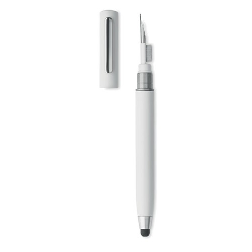 Stylo à bille twist avec stylet en ABS. Comprend également un Kit de nettoyage pour oreillettes sans fil : pince métallique, éponge et brosse. Encre bleue.