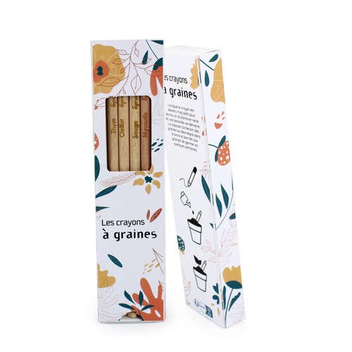 • 6 crayons à graines avec mine de couleur en bois de tilleul ou cèdre, issu des forêts domaniales de Pologne, 100% FSC