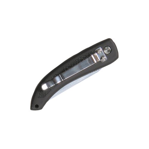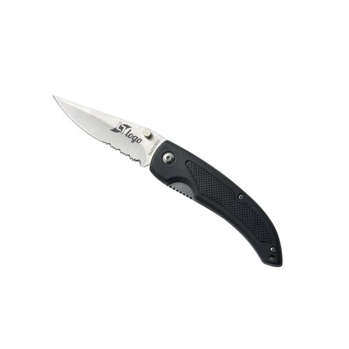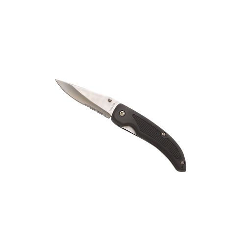 Couteau pliant avec lame en acier inoxydable 420 composée d'une partie de lame fine (pour les coupes précises) et d'une partie microdentée (pour les coupes difficiles). Manche en acier inoxydable recouvert d'un gainage caoutchouc de couleur noire. Ouverture/fermeture une main avec cran de sécurité de type Liner lock. Clip de ceinture en acier inoxydable.