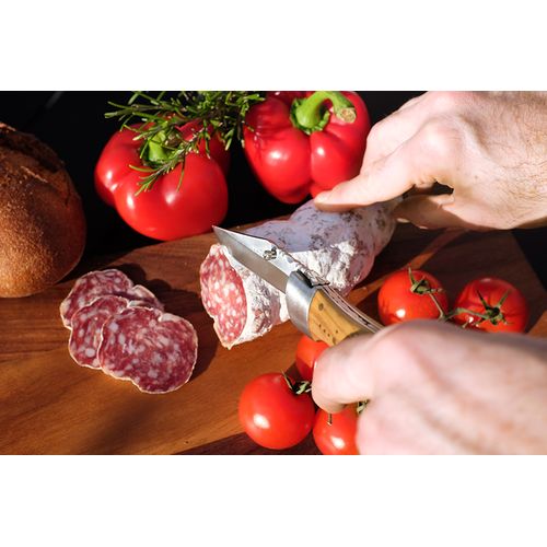- Une lame en acier 420 qui assure la meilleure résistance possible à l'oxydation et offre un affûtage facilité.