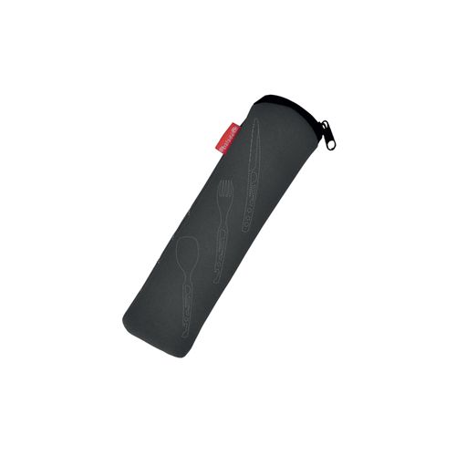 Couverts de voyage en acier inoxydable 420 alimentaire. 5 fonctions : couteau avec lame microdentée, fourchette, cuillère, décapsuleur, ouvre boite. Passe au lave- vaisselle. Livrés avec un mousqueton en aluminium dans une housse en néoprène gris anthracite.