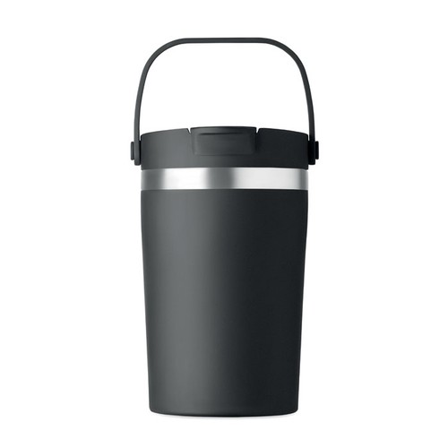 Gobelet à double paroi en acier inox recyclé (90 % d'acier inox recyclé et 10 % d'acier inox) avec couvercle 2- en-1 en PP et sangle de transport en RPET. Anti fuite et durable. Capacité : 350 ml.