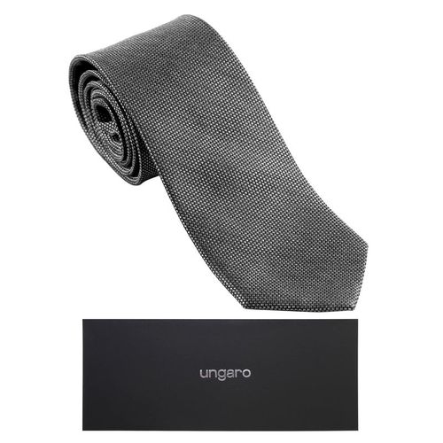 La cravate "Leone" offre une allure masculine aussi intemporelle que contemporaine. Elle est réalisée en soie précieuse dans un motif géométrique subtil noir et gris lui conférant un style parfaitement élégant