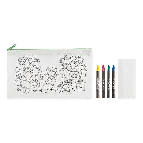Trousse à crayons en non tissé comprenant 4 crayons de couleur.