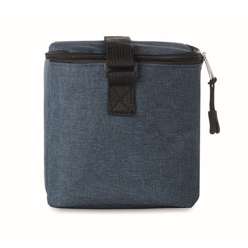 Sac isotherme 2 tons pour 6 canettes en RPET 600D avec poche frontale. Matériau isolant : PEVA 0,15 mm PEVA + 3 mm de mousse.