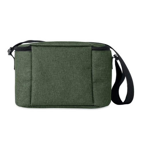 Sac isotherme 2 tons pour 6 canettes en RPET 600D avec poche frontale. Matériau isolant : PEVA 0,15 mm PEVA + 3 mm de mousse.