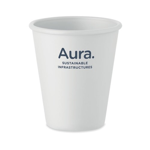Gobelet réutilisable à simple paroi en PLA de maïs. Comme il s'agit d'un gobelet à simple paroi, un transfert de chaleur peut se produire. Capacité 200 ml.