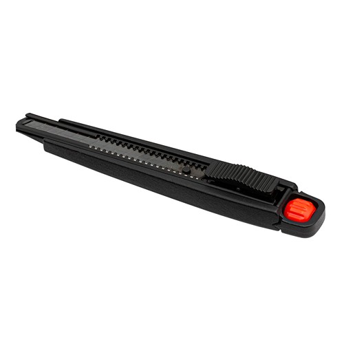 La lame de cutter RE98- SECARE peut être utilisée de façon universelle, que ce soit pour ouvrir des paquets, comme coupe- tapis classique ou pour d’autres activités de coupe artisanales (charge jusqu’à 25 kg). La lame est en acier carbone de 9 mm de large, elle est découpée au laser et est donc extrêmement tranchante (0,6 mm d’épaisseur). La lame peut être bloquée par un bouton en plastique rotatif.