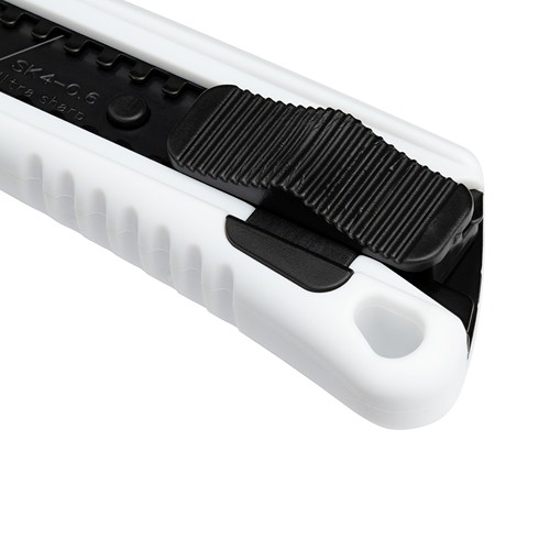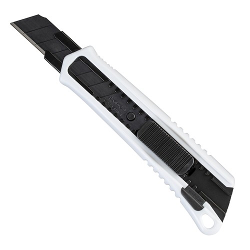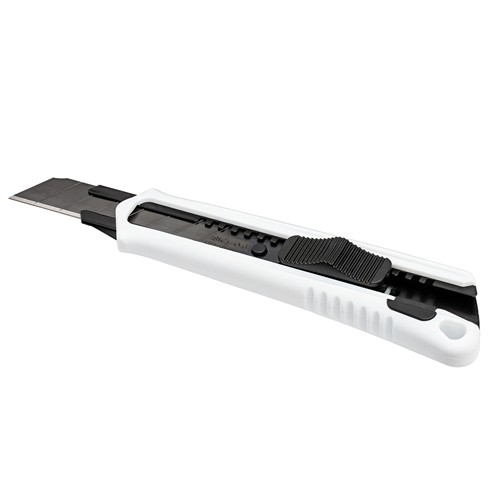 Le cutter coupe sans effort différents matériaux tels que des panneaux et des tuyaux en plastique, des tapis, des câbles, du carton ou du plâtre. Le cutter avec manche en plastique blanc et lame en acier carbone de 18 mm de large / 0,6 mm d’épaisseur avec revêtement noir a une charge de compression allant jusqu’à 25 kg. La lame découpée au laser rend le cutter extrêmement tranchant.
