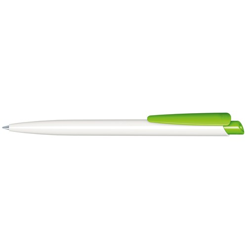 Stylo à bille rétractable avec corps en plastique blanc et clip de couleur.