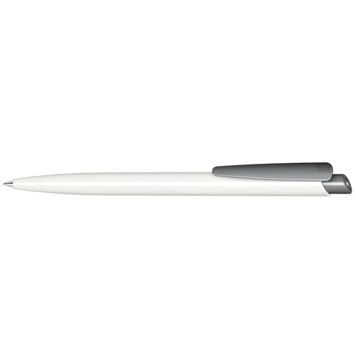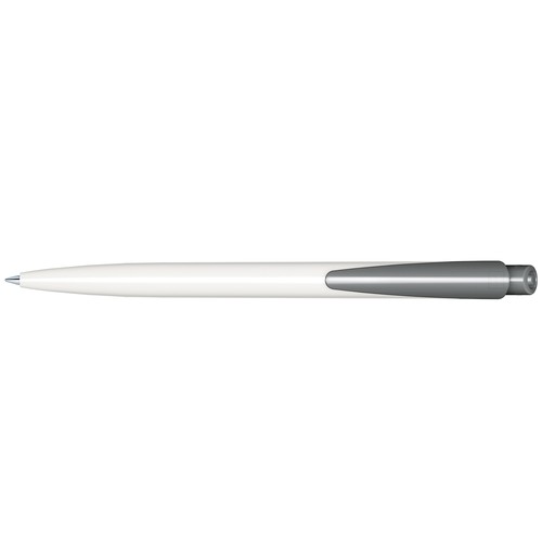 Stylo à bille rétractable avec corps en plastique blanc et clip de couleur.