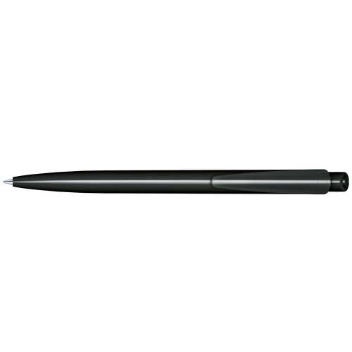 Stylo à bille rétractable avec corps et clip en plastique opaque.