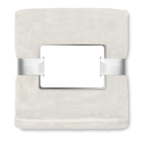 Couverture en polaire 280 gr/m² enveloppée dans un ruban et carte imprimable.
