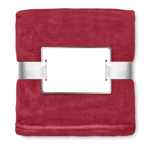 Couverture en polaire 280 gr/m² enveloppée dans un ruban et carte imprimable.