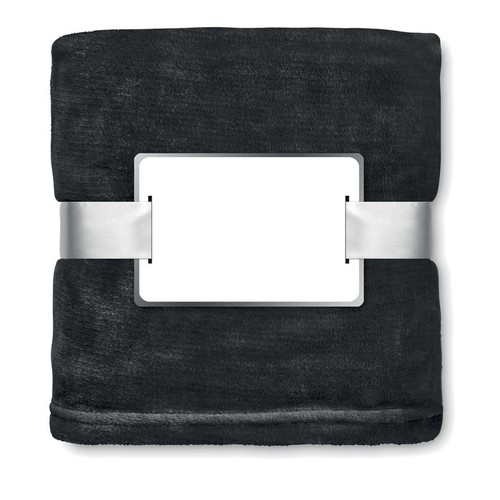 Couverture en polaire 280 gr/m² enveloppée dans un ruban et carte imprimable.