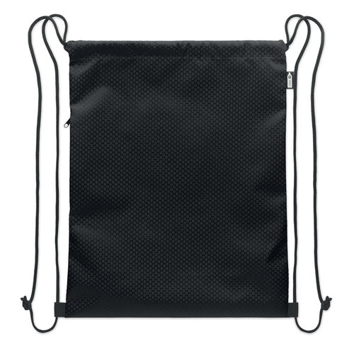 Sac à cordon en polyester 420D RPET avec poche verticale zippée sur le côté et doublure en RPET 210D. Cordons résistants des deux côtés. Capacité de 4,5 litres, charge maximale de 5 kg.
