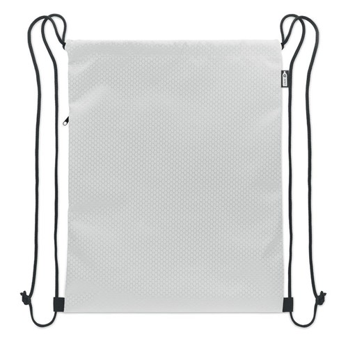 Sac à cordon en polyester 420D RPET avec poche verticale zippée sur le côté et doublure en RPET 210D. Cordons résistants des deux côtés. Capacité de 4,5 litres, charge maximale de 5 kg.
