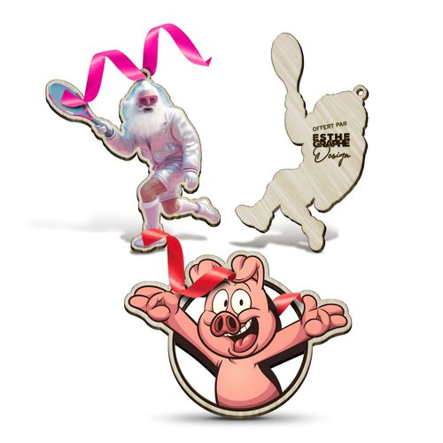 Livrée avec un ruban rouge (200x6 mm) ou une cordelette en paille, cette décoration en bois allie simplicité et style, parfaite pour vos événements ou collections personnalisées.