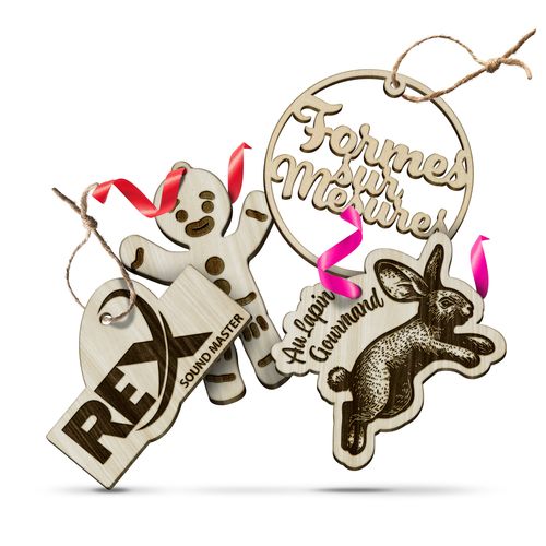 Cette décoration en bois contreplaqué est entièrement personnalisable avec une forme au choix, selon la longueur maximale souhaitée.