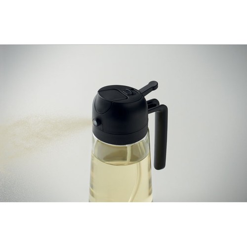 Distributeur d'huile et pulvérisateur 2 en 1 en verre avec couvercle en PP et paille en PE. Capacité de 450 ml.