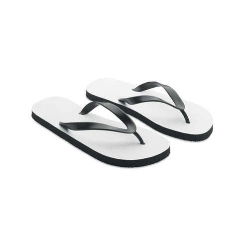 Tongs pour sublimation avec sangles en PVC. Semelle en caoutchouc et tissu en polyester sur le dessus. taille 44-46. L'article ne peut être commandé qu'en version imprimée.
