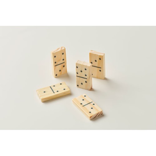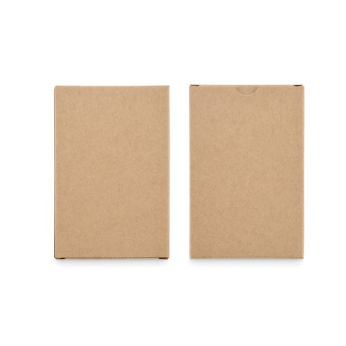 Jeu de dominos en bois et de cartes à jouer (54 cartes) en papier recyclé. Présenté dans une boîte en MDF.