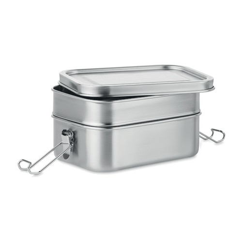 Lunch box en acier inoxydable 2 compartiments avec des fermetures latérales solides et sûres. Contenance 1200 ml.