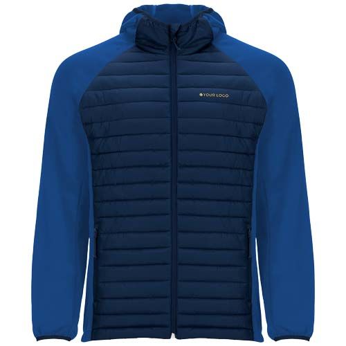 Veste unisexe en combinaison bi- matière : Capuche fixe ajustée. Manches raglan. Manches, panneaux latéraux et capuche en tissu Softshell. Tissu matelassé toucher plume devant et dos. Fermeture zippée inversée avec protège- menton et tirette assortis. Deux poches avant avec fermetures zippée. Bordure élastique assortie au col, aux poignets et à l'ourlet. Étiquette détachable. Modèle coupe- vent. Le mannequin Homme mesure 184 cm et porte la taille L, le mannequin Femme mesure 179 cm et porte la taille S.