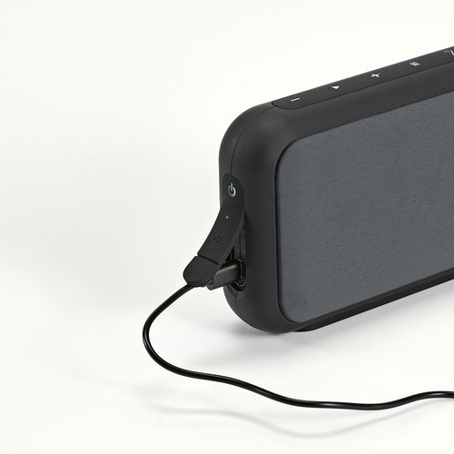 L’enceinte Hawking, fabriquée en rABS et rPET, est équipée d’une batterie de 4000mAh (2 x 2000mAh) offrant 4 heures d’autonomie et un temps de recharge de 3 heures. Ses grilles amovibles permettent une personnalisation complète. Elle propose une connexion sans fil jusqu’à 10 mètres, la fonction TWS permet de se connecter à d'autres appareils et une puissance de 2 x 5W. Réponse en fréquence : 100-20 kHz. Livrée avec une poignée de transport, elle est fournie dans une boîte kraft individuelle "seconde vie".