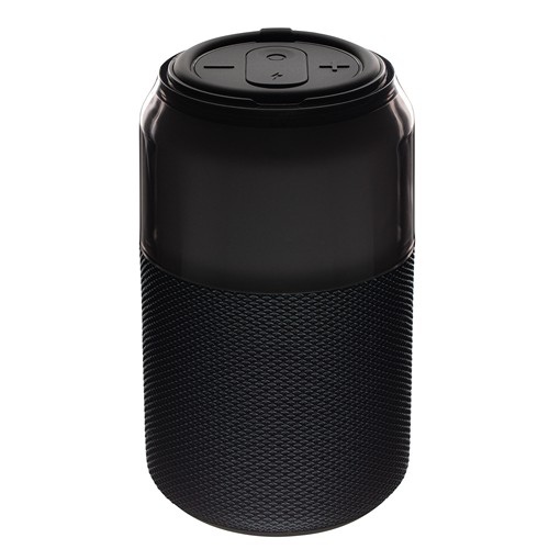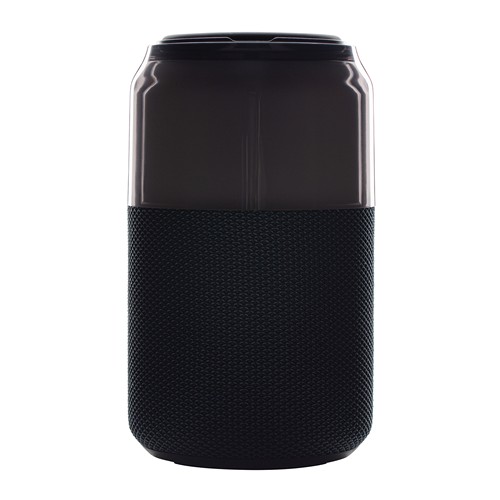 Fabriquée en plastique ABS et polycarbonate recyclé, elle est disponible en noir intemporel. Son design moderne et son utilisation intuitive séduisent immédiatement. Une lanière en silicone permet de l’accrocher ou de la transporter facilement. Le câble USB- C inclus assure une charge rapide. De plus, son port USB- A permet de lire des fichiers audio depuis une clé USB.