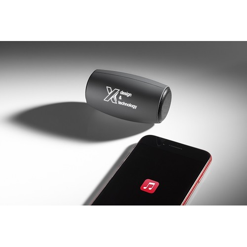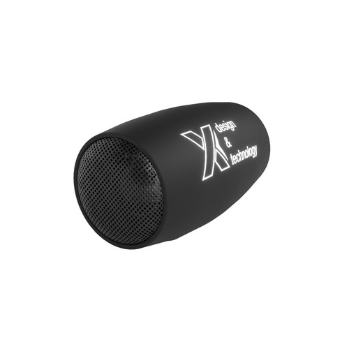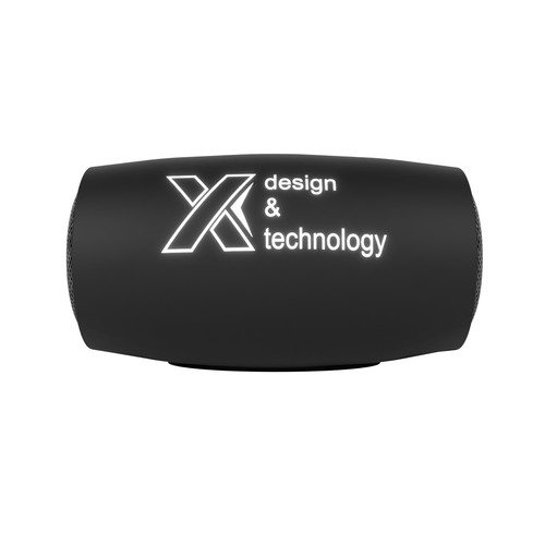 Double enceinte mini sans fil 2x3 W en rubber et logo lumineux.