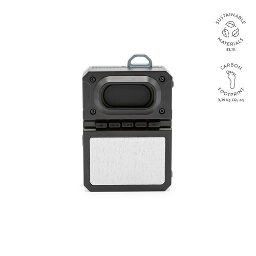 Fabriquée à 100 % en ABS recyclé, elle offre une autonomie de 6 heures et un son impressionnant pour sa taille compacte. Temps de charge complète : 2 heures.
