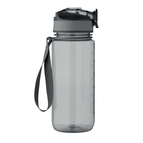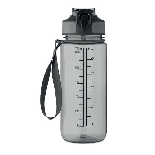 Bouteille de sport motivante en RPET avec paille intégrée, embout en silicone souple, fermeture de sécurité. Sangle de transport en RPET satiné. Capacité de 700 ml. Anti fuite.