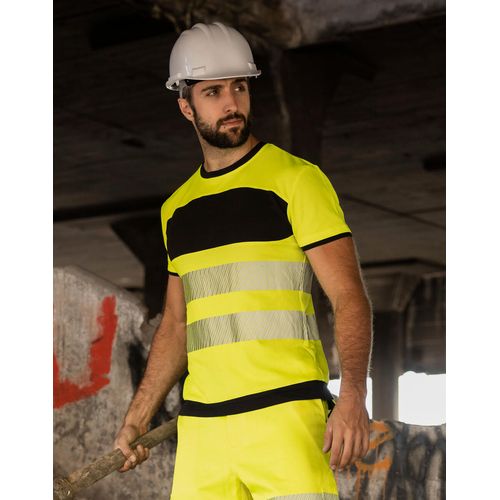 - Deux bandes réfléchissantes brisées de 7 cm de large autour du corps